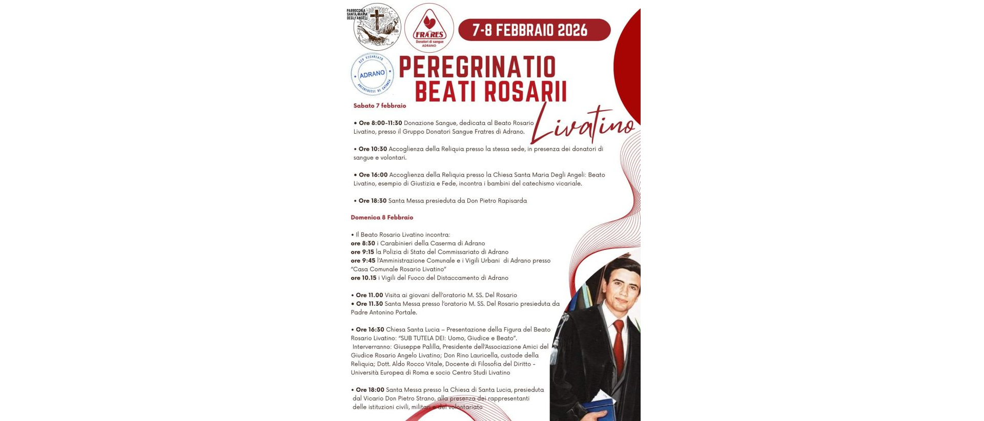 Intensa emozione e momenti di grazia vissuti dalla Parrocchia Santa Maria degli Angeli, dal Gruppo Fratres Donatori di Sangue di Adrano e dalla comunità adranita che, nei giorni 7 e 8 febbraio 2026, hanno abbracciato la reliquia del Beato Rosario Livatino.