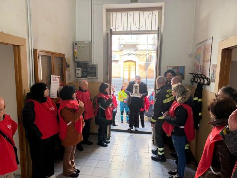 La giornata di domenica 8 febbraio, è stata caratterizzata da un ricco programma di incontri in cui la Reliquia , con a seguito una folta delegazione di donatori sangue del Gruppo Fratres, ha toccato i luoghi della legalità: la stazione dei Carabinieri, in cui è stata letta della vita del Beato e di alcune sue riflessioni, unendosi in preghiera e grazie agli spunti dettati dai sacerdoti di riferimento non è mancata l’occasione di introspezione personale. L’incontro si è poi concluso recitando la preghiera del carabiniere. Successivamente la reliquia ha fatto sosta presso il Commissariato di Pubblica Sicurezza, per proseguire presso la Casa comunale, dedicata al beato Livatino, in cui l’amministrazione comunale ed i Vigili Urbani e i rappresentanti delle associazioni di volontariato, hanno ascoltato le parole profonde di padre Rino Lauricella. Penultima tappa della mattinata è stata la visita presso i Vigili del Fuoco, che al suono delle sirene, hanno reso omaggio alla Reliquia.